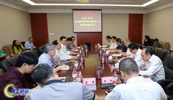 9月8日上午,省科技厅党组书记、厅长刘东,副厅长景世刚一行在自贡市科技局局长杨洪春的陪同下莅临我校检查指导工作。党委书记汪明义、校长庹先国、副校长刘康在综合楼615会议室会见了刘厅长一行并汇报相关工作。