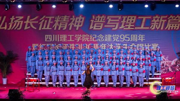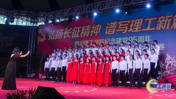 比赛在土木工程学院演唱的《四川理工学院校歌》和《在灿烂的阳光下》拉开序幕,他们用热情与团结歌唱黄岭精神,演绎长征气质。21支代表队依次出场,他们朝气蓬勃,精神抖擞,用他们特有的嗓音和风格,唱出理工风采,弘扬长征精神。《四川理工学院校歌》是每支参赛队伍的必唱曲目,高亢激扬的校歌在体育馆上空久久飘荡,理工学子用歌声表达对学校的热爱;《十送红军》、《映山红》、《太行山上》、《太阳最红,毛主席最亲》、《南泥湾》、《大刀进行曲》、《亲吻祖国》、《爱我中华》、《伟大的时代、伟大的党》……一首首耳熟能详的歌曲,表达了浓浓的爱国情怀,抒发了不怕困难、敢于挑战的革命乐观主义精神。最后,比赛在大学生艺术团带来的维吾尔族舞蹈《旋旋旋》中圆满结束。