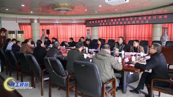 1月6日下午,四川省高校第三期优秀中青年干部递进班川南片区调研组一行16名学员来校调研。党委书记汪明义热情接待了来访学员,并在行政楼第四会议室举行了调研交流座谈。