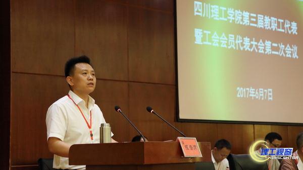 校长庹先国向大会作了题为《开拓进取谋发展 务实担当铸辉煌 建设特色鲜明、优势突出的四川理工大学》的工作报告。报告全面总结了我校2016年事业发展情况,对学校面临的形势和问题进行了分析,部署安排了2017年重点工作任务。