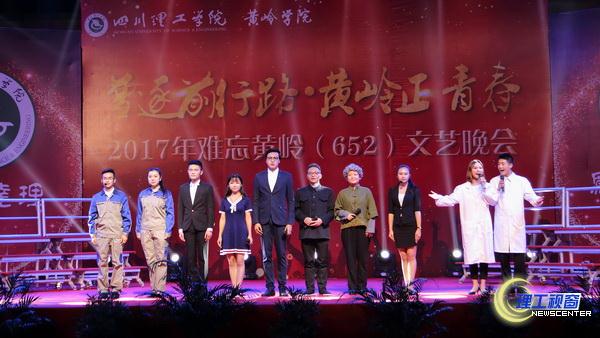 随后,晚会拉开序幕,“黄岭新韵(建设黄岭)”、“黄岭之春(幸福黄岭)”、“黄岭礼赞(惜别黄岭)” 三个篇章依次上演。第一篇章的当代舞《652的开拓者》用精湛优雅的舞姿表现了1965年第一批开拓者背井离乡来到黄岭这片荒芜贫瘠的土地,他们用双手建成了这座美丽的校园;情景诗朗诵《我们的黄岭情缘》展现了一代代黄岭人在这片土地上结下的深深的感情,从初建、发展、以及临别之时对黄岭的不舍眷恋;女生独唱《美丽家园》更是深情唱出了黄岭就像家一般的港湾,让每一代黄岭人一步步成长,秉承着黄岭精神走向远方。第二篇章,同学们用舞蹈、情景表演、相声、武术等多种形式展现了黄岭丰富多彩的校园生活;师生合唱的《师恩父子情》,配乐诗朗诵《三代理工情》将每个人对黄岭数年的情怀展现的淋漓尽致,让我们看到了老师们辛勤的耕耘,学生对老师的感恩。最后一个篇章《时间都去哪儿了》唱出了老师那鬓鬓白发;黄岭学院党总支书记李坚与06年辅导员一起朗诵了李坚创造的诗歌《黄岭,念兹在兹、唯此最美》,把对黄岭的每一丝情谊吐露在诗词的字里行间,每一次回眸都让我们看到了不一样的黄岭人对黄岭这片土地的热爱和深情;《不忘初心》让我们记住当初的那份荣誉和坚持;最后的大合唱《在灿烂阳光下》和《在告别晚会上》,几位学子与老师们对黄岭的真情告白,让台上台下每一个人动容,从1965年的开始到今天不是结束的离别,不舍之情伴随着黄岭精神将奔向更宽广的远方。