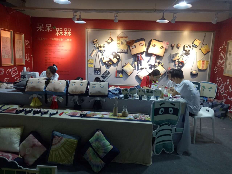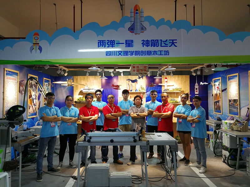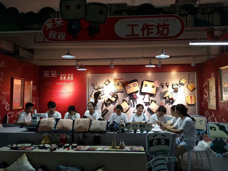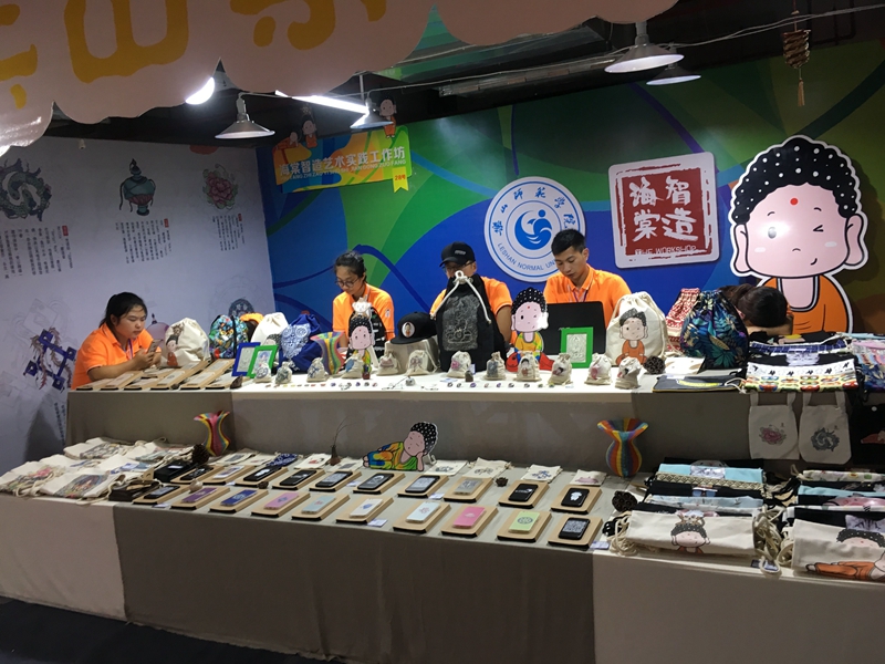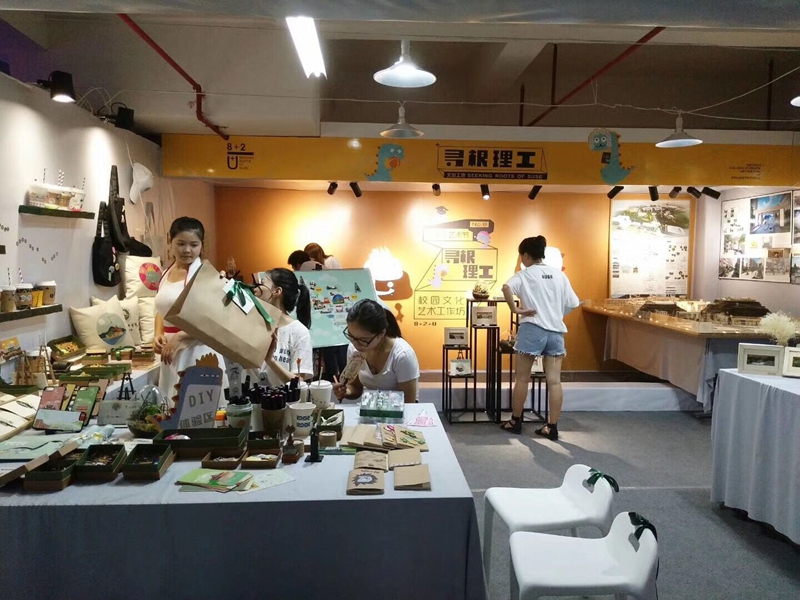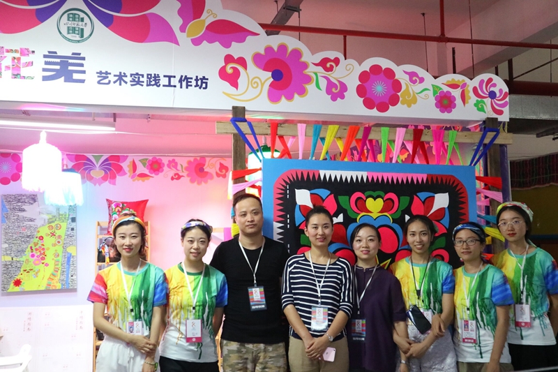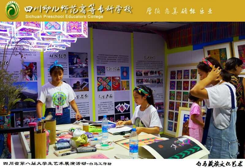 为做好艺术作品类、艺术实践工作坊展示展演活动及筹备好开幕式,美术组委会100余名工作人员和大学生志愿者从8月16日进场布置,每天工作12个小时以上,8月19日完成艺术作品类和大学生艺术实践工作坊的布置,并接待28所高校32个工作坊入场。美素组委会还负责四大类别展演活动的全部标志标牌、海报喷绘等的设计制作工作。