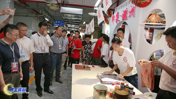 8月22日上午大艺展演开幕式结束后,莅临开幕式的领导、嘉宾、参赛团队师生和志愿者300多人在志愿者的引导下,有序进入汇南校区第四实验楼,参观了3楼的高校校长书画摄影作品展、2楼的大学生艺术作品展和1楼的大学生艺术实践工作坊。高校校长书画摄影作品展全部是各高校校级领导的艺术作品,以书法居多。大学生艺术作品展分为专业组、普通组和微电影组,作品种类繁多,可谓百花齐放。微电影题材广泛,反映了自媒体与现代传媒结合的特点。工作坊是本届艺术展演的新生事物,大家按照要求,突出特色,出奇出新,重在实践。参观队伍每到一家工作坊,参赛队员的解说人员都会详细介绍工作坊的特色与创新点,亮点多多。参观过程中,解说员全程引导,志愿者各司其职,礼仪服务周到。