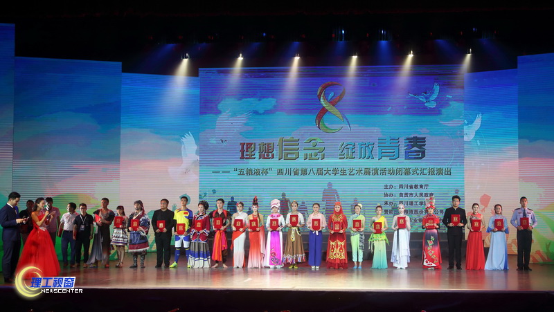 大艺展悦动四川,理想信念,绽放青春。8月26日下午,“五粮液杯”四川省大学生艺术展演活动闭幕式汇报演出在四川理工学院科学会堂隆重举行。教育部体育卫生与艺术教育司副巡视员万丽君、四川省人民政府参事王康、省教育厅副巡视员王嵩建、省教育厅体卫艺处处长李孝武、副处长唐克红、自贡市人民政府副秘书长赵颖红、五粮液集团代表由成逊、中国农业银行自贡分行行长涂克力、我校党委书记王洪辉、校长庹先国等领导出席闭幕式汇报演出。省委宣传部、团省委、省教育厅、省财政厅有关负责同志、全川109所高校党委书记、校长代表、全川21个地市州教育行政主管部门分管美育工作负责人、参演高校领队、指导教师及师生1000余人共襄演出盛举。