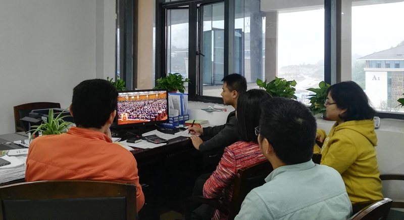 全校各党总支根据学校统一安排,分别在汇东校区、营盘校区和宜宾校区组织党员干部收看党的十九大开幕会。马克思主义学院、化学与环境工程学院、自动化与信息工程学院、经济学院、音乐学院、美术学院、继续教育学院、分析测试中心、保卫处、基建处等二级学院、教辅部门和机关职能部门积极利用各种技术手段,组织了集中观看。校团委组织学生干部在易班学生工作站观看了党的十九大开幕会。机关职能部门工作人员纷纷通过办公室电脑在线收看十九大开幕会,很多无课的同学自发聚在宿舍的电脑旁观看党的十九大的开幕会。