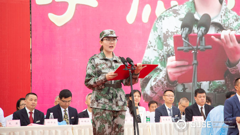 随后,自贡军分区副司令刘新宇大校宣布2019级学生军训开始。武装保卫部部长杨汉国做《入学安全教育培训》。