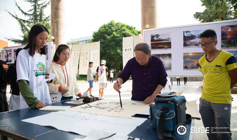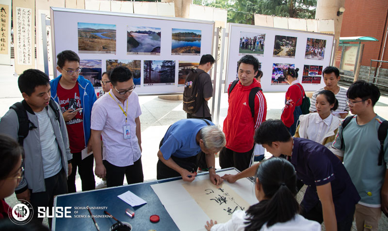 在展出现场,学校关工委、离退休管理处、校老年书画摄影协会还特邀本次获奖作品部分作者在展出现场开展义务书法创作,并免费赠送给亲临现场观展的师生员工。