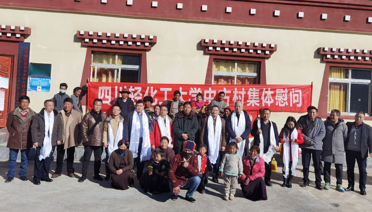 28日上午,王洪辉书记一行在雅江县人民政府副县长陈玉龙、瓦多乡党委书记格让降错、我校扶贫干部雅江县瓦多乡中古村驻村工作队队员张翼宇的陪同下,前往我校定点帮扶的中古村慰问乡亲们。乡亲们看见王洪辉书记一行到来,纷纷上前献上表达敬意的哈达。王洪辉书记发表讲话,对中古村的乡亲们表示慰问,勉励他们继续努力生产和工作,生活一定会越来越美好,并代表学校捐赠了8400元“春雨工程”助学金,资助家庭困难的中古村学子。王洪辉书记一行将米、油等慰问品一一分发给乡亲们,并与乡亲们亲切交谈,了解他们的生产生活情况。虽然天气寒冷,但是慰问现场情意浓浓,乡亲们非常高兴,脸上洋溢着幸福的笑容。