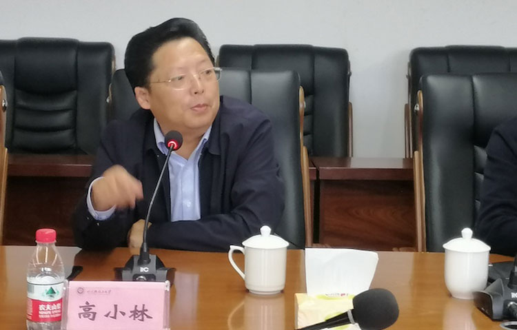 高小林副校长对四川大学后勤保障部党委书记惠新强、部长肇启伟一行的到来表示热烈的欢迎!并详细的介绍了我校的发展历程、办学特色、内涵式发展方向、校园文化建设等。他希望,四川大学党委书记惠新强、部长肇启伟一行能把本校后勤的先进管理服务经验倾囊传授,进一步提升我校后勤保障服务水平;同时,通过校际之间的交流和探讨,进一步促进两校后勤共同进步,为我校的快速发展匹配适宜的后勤保障服务。