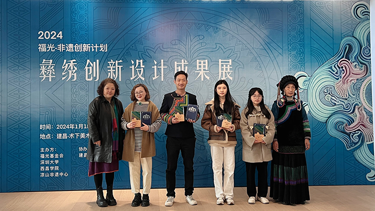 2023年12月14日-17日,研究生导师朱玉梅副教授参加了由福光基金会资助,深圳大学美术与设计学院主持,联合西昌学院艺术学院、凉山非遗中心发起的“福光•非遗创新计划”公益项目。2024年1月15日-20日,项目第一项活动“彝绣创新设计工坊”教学成果——“彝绣创新设计成果展”在西昌建昌•术下美术馆举行。朱玉梅作品“‘云栖’系列饰品设计”荣获银奖。