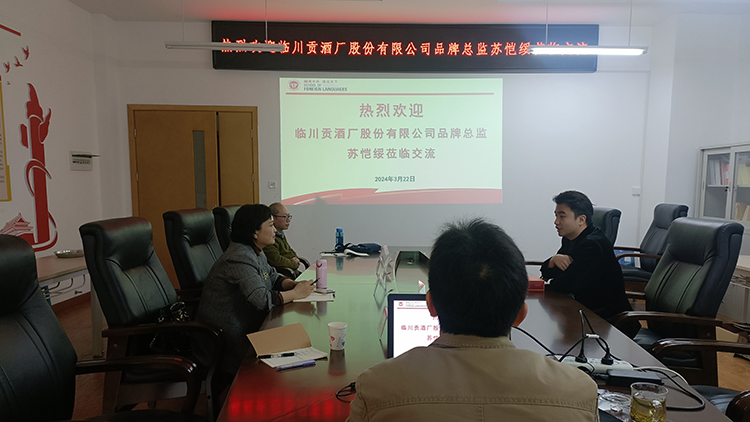 3月22日上午,临川贡酒厂股份有限公司品牌总监苏恺绥一行到访外语学院。学院院长云虹、英语系主任王洪渊、党政办主任颜锐、实验室教师万新参加了交流会。
