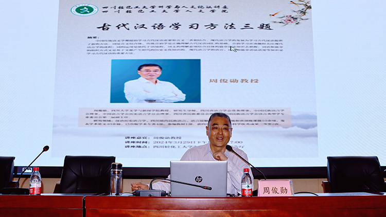 3月29日下午,四川大学周俊勋教授受邀到汇东校区厚德楼学术报告厅为人文学院师生作“古代汉语学习方法三题”学术讲座。人文学院研究生办公室徐峰博士、中文系李明龙博士及其他师生代表参加讲座。李明龙主持讲座。