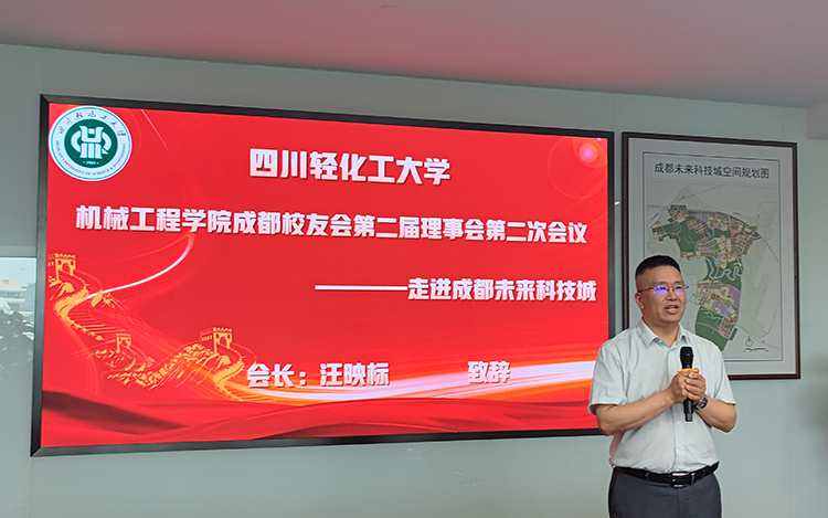 机械工程学院成都校友会会长、威特龙消防安全集团股份公司董事长汪映标代表理事会讲话。他深情地表示,此次会议的召开,旨在为校友们提供一个交流合作的平台,希望通过深入的分享与探讨,能够找到校企之间更多的合作契合点,共同发挥各自的优势,实现互利共赢,推动双方事业的蓬勃发展。