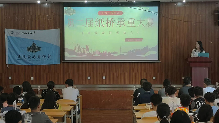为提升大学生动手实践能力和创新意识,培养团队协作能力,5月25日下午,土木工程学院建筑爱好者协会于汇南校区第四实验楼214教室举办第二届纸桥承重大赛。土木工程学院党委副书记姚宗玉、副院长刘文方、大学生科创中心主任赵雅娜、建经系主任梁俊勇、土建系主任张正瑞、教师代表Ahad、但启联、学工办副主任白宇出席本次大赛。