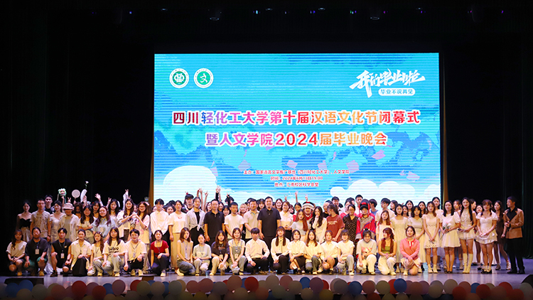 2024年6月13日晚,由国家语言文字推广基地(四川轻化工大学)、人文学院共同举办的四川轻化工大学第十届汉语文化节闭幕式暨人文学院2024届毕业晚会在汇东校区科学会堂举行。1200余名师生参加了本次活动。