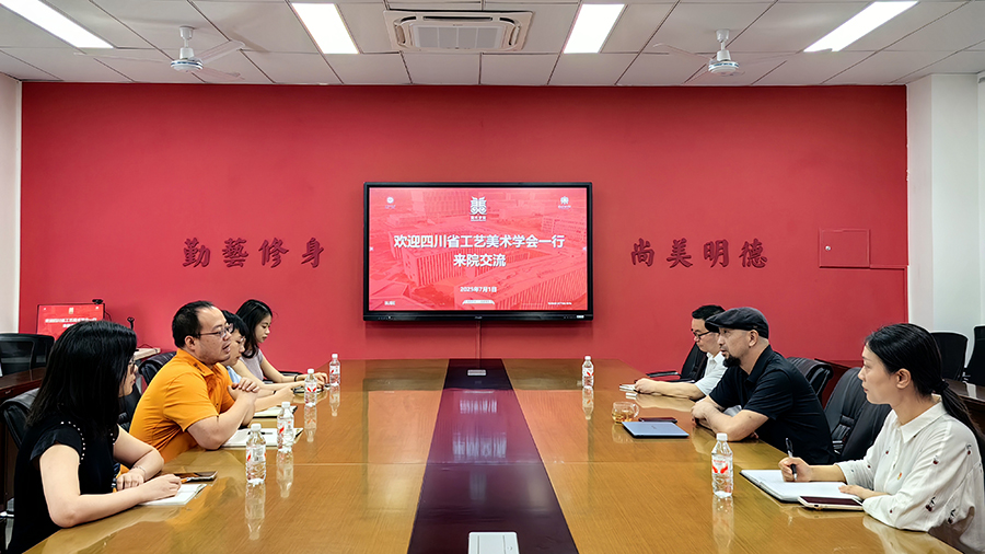 7月1日上午,四川省工艺美术学会代理理事长王立博、副秘书长龚绪一行到访我校李白河校区,就四川省工艺美术事业发展开展交流。美术学院黄磊院长参加交流会并讲话。