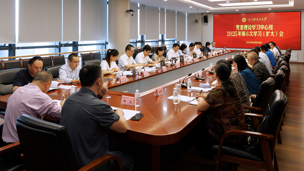 9月29日下午,学校党委理论学习中心组在李白河校区召开2025年第六次学习(扩大)会,会议主题为“高举伟大旗帜,凝聚奋进力量”,深入学习贯彻近期重要讲话、会议和文件精神。校党委书记张力主持会议并作传达、领学,全体校党委常委、党委部门及人事处(党委教师工作部)主要负责人、各二级党组织书记参加会议。