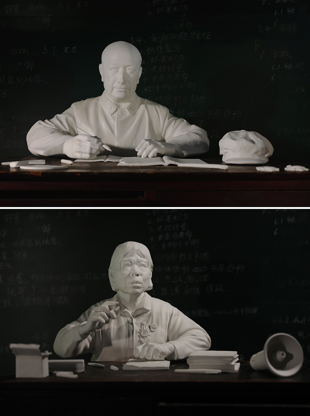 奉光水的《盐都晨集图》以自贡盐业历史建筑和艾叶古镇为素材,通过描绘清晨集市场景,生动反映了乡村振兴为基层群众生活带来的积极变化。马俊的雕塑《国之脊梁·星辰与灯火》则以钱学森与张桂梅为原型,通过简洁有力的造型,塑造出两位时代楷模投身科研与教育的动人形象。