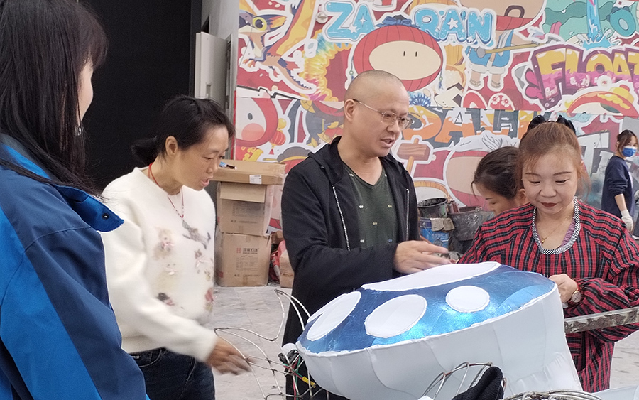 10月11日,美术学院彩灯艺术系教师李昊受邀参加沿滩区仙市镇“掌握彩灯裱糊理论·点亮失地农民就业路”专题培训,为灯城社区30余名失地农民进行授课。本次活动在省、市、区委社会工作部指导下,由灯城社区主办,自贡九七七爱心公益协会承办,自贡市盐韵社会工作服务中心协办,旨在培养一批技术熟练的彩灯裱糊工匠。