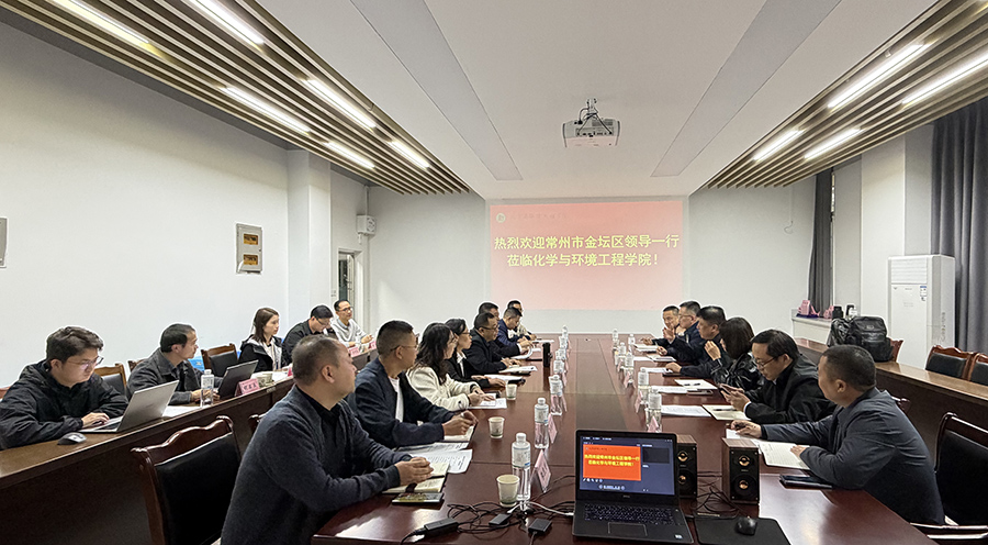 10月23日,常州市金坛区委副书记、政法委书记刘小平一行到访我校化学与环境工程学院,双方围绕盐卤资源高效综合利用与绿色低碳转型主题进行了深入交流。学院党委书记张国成主持会议,院长潘志成及学院教师代表参会。