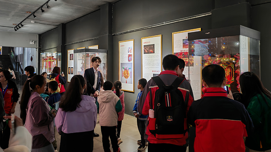 随后,孩子们前往自贡市彩灯博物馆,开启非遗文化体验。馆内色彩绚丽、造型精巧的彩灯展品迅速吸引了他们的目光。在讲解员和志愿者的共同引导下,孩子们参观了各主题展厅,近距离观察彩灯的制作工艺与吉祥图案,深刻感受非遗文化的独特魅力。