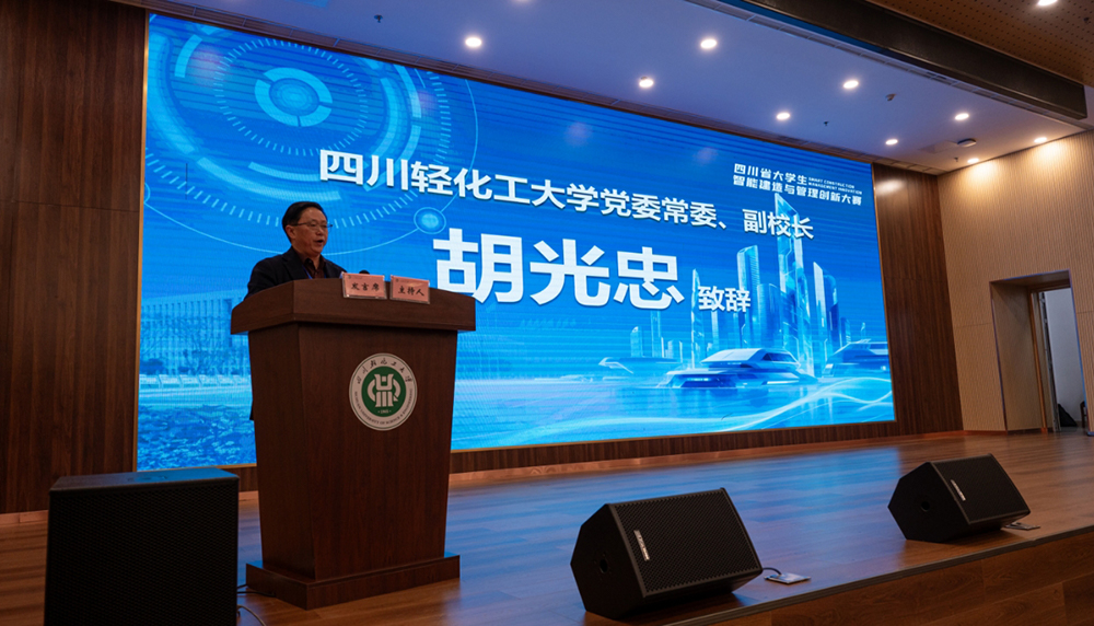 开幕式上,我校党委常委、副校长胡光忠教授致开幕辞。他指出,本届大赛围绕智能建造与管理运维主题,旨在激发大学生的创新意识,提升工程实践能力,为行业发掘并培养创新型、复合型高素质人才。一直以来,四川轻化工大学始终秉持为党育人、为国育才初心使命,坚持“五育并举、知行合一”,构建了以“轻工、化工、军工”为特色的学科体系。此次大赛既是对我校的信任与肯定,更是与各兄弟院校深入交流、共同探索人才培养新路径的宝贵契机。