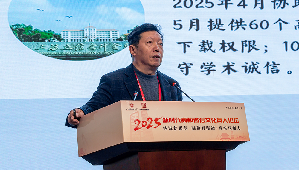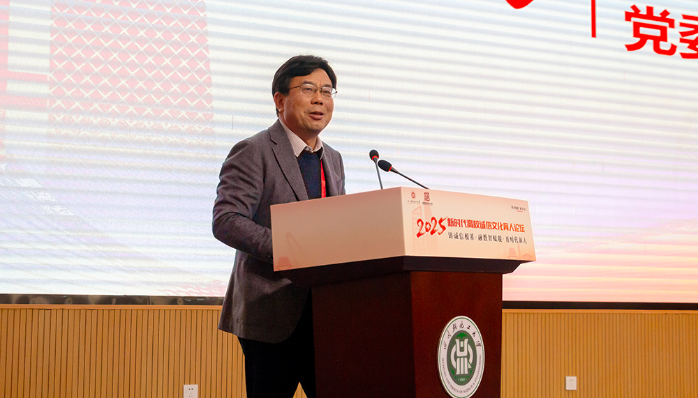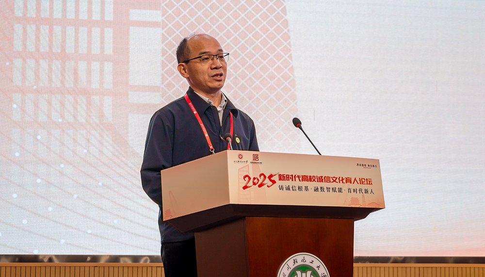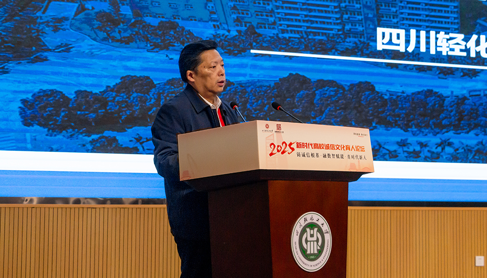 开幕式上,学校党委书记张力致辞。他深情回顾“652工程”的奋斗历程,通过“652”精神中忠诚担当与诚信品格的深刻内涵,强调诚信是育人工作的基石。结合宜宾市信用体系建设成果与李庄红色资源,提出高校应主动融入地方治理现代化进程,通过党建联建、项目共建实现诚信教育与区域发展的双向赋能。上海立信会计金融学院党委书记解超代表主办方致辞,他指出,论坛是落实立德树人、推进“大思政课”改革的重要实践,需以高站位推动诚信育人一体化布局并加速数智赋能,提升育人系统集成度与整体效能。