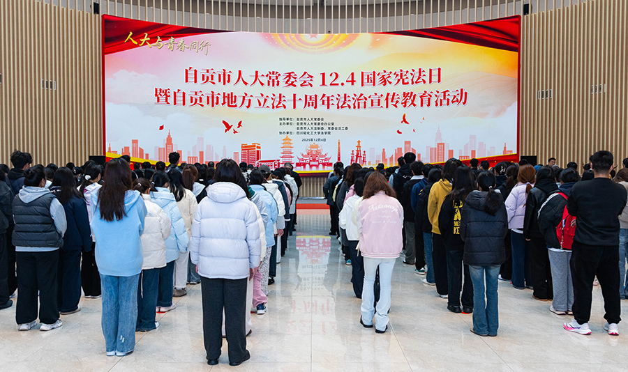 启动仪式后,与会人员参观了自贡市地方立法十周年成果展。现场设置的“普法集市”联合14个市级部门开展法律咨询,并通过宪法“速答盲盒”、法条“连连看”等趣味互动游戏,吸引众多师生参与。同期,我校在李白河校区举办了《宪法精神与青年责任》专题讲座,在宜宾校区通过设立宣传点、走进教室寝室、深入社区等方式,开展签名承诺、有奖问答、微宣讲等系列宣传活动,立体化推动宪法知识普及。
