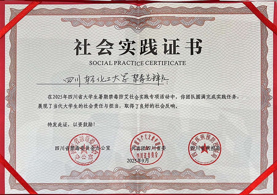 今年7月,四川省禁毒办、团省委、省疾控局联合组织开展了2025年四川省大学生暑期禁毒防艾社会实践专项活动,经过团队申报、团队遴选等环节,四川轻化工大学禁毒先锋队成为最终入选的20支高校实践团队之一,同时获评“优质高校团队”(仅6所获评),并受邀参加此次文化节。