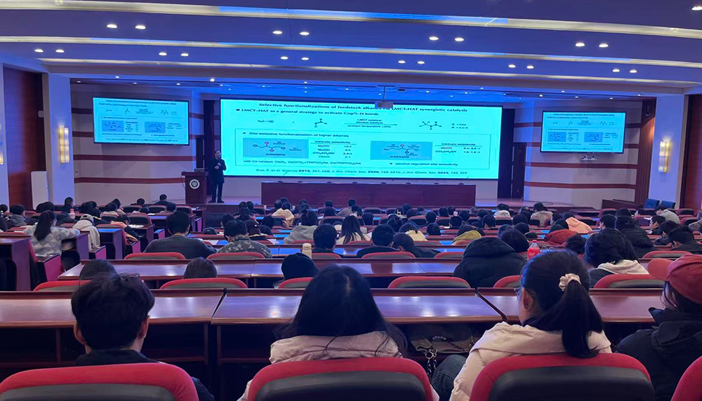 12月10日下午,应科学技术处和化学与环境工程学院邀请,国家杰出青年基金获得者、中国科学院上海有机化学研究所左智伟研究员莅校,在汇东校区厚德楼学术报告厅作题为“基于配体金属电荷转移(LMCT)的惰性键催化转化”的学术报告。化学与环境工程学院党委书记张国成、院长潘志成、化学及其相关学科师生200余人参会,化学与环境工程学院副院长李玉龙主持。