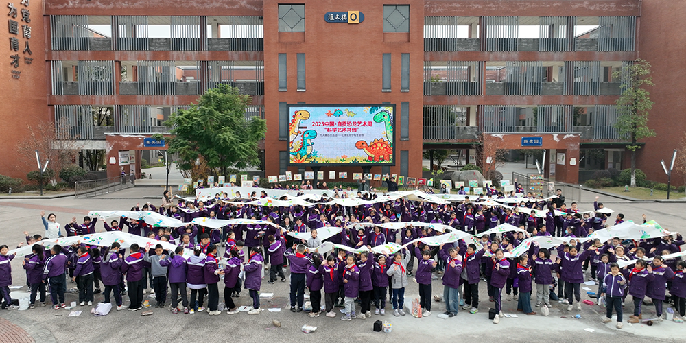 12月17日上午,2025中国·自贡恐龙艺术周系列活动之“科学艺术共创”万人画恐龙特色美育活动在自贡市汇南实验学校主会场拉开帷幕。本次活动由我校美术学院、自贡市教育科学研究所、自贡恐龙博物馆联合举办,实现了自贡市“四区两县”八所学校的联动,万笔同绘,场面壮观。