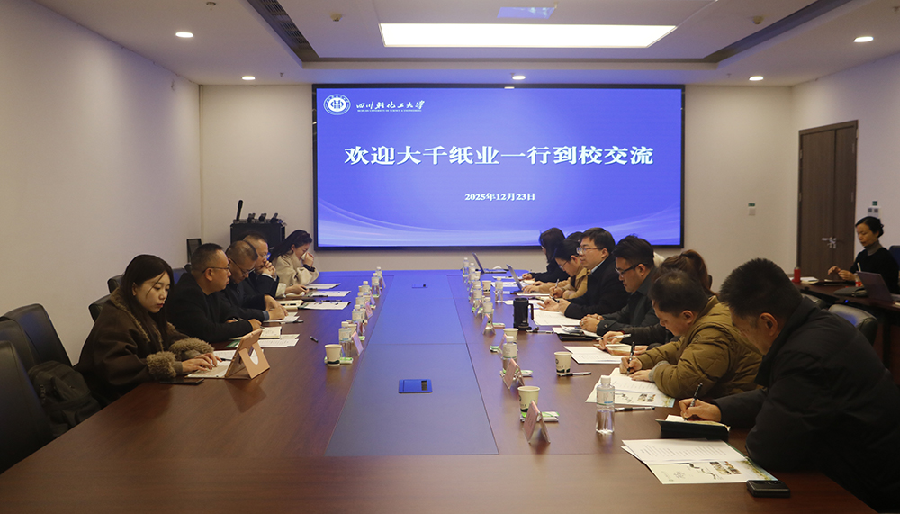 12月23日上午,四川青衣开发投资集团有限公司党委委员、副总经理,青衣文化旅游开发有限公司总经理李正谚率大千纸业有限公司、四川省文化大数据责任有限公司相关负责人一行莅校交流。学校党委常委、副校长吴亚东出席座谈会,科学技术处、食品与酿酒工程学院等相关单位负责人及教师代表参加交流。会议由科学技术处处长刘小楠主持。