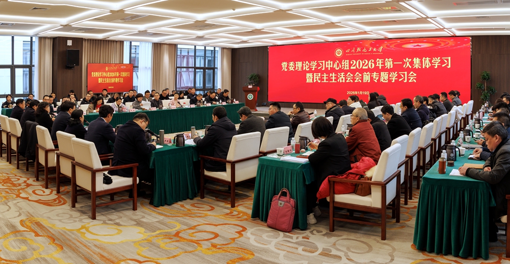 张力领学了习近平总书记在中共中央政治局民主生活会上的重要讲话精神、习近平总书记在二十届中央纪律检查委员会第五次全体会议上的重要讲话精神、习近平总书记二〇二六年新年贺词和在全国政协新年茶话会上的重要讲话精神。校党委副书记、校长曾英领学了习近平总书记署名文章《学习好贯彻好党的二十届四中全会精神》。