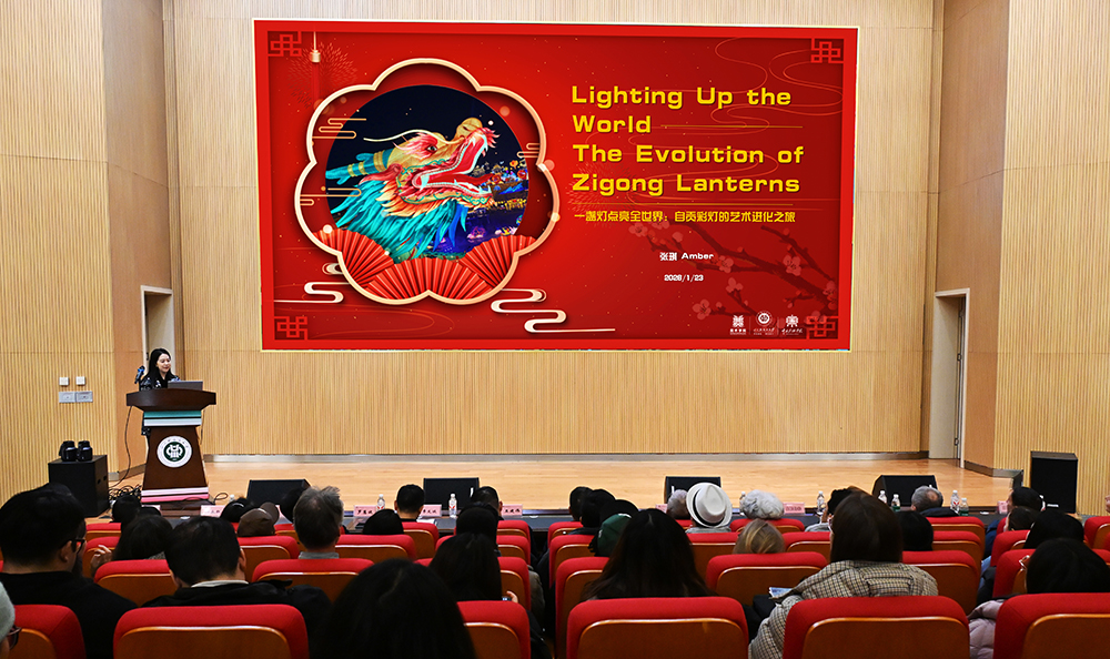 来宾首先参观了“一眼一亿年”恐龙艺术作品展。随后,在“世界与四川大讲堂”聆听了由我校美术学院(中国彩灯学院)张琪老师主讲的《中国彩灯历史沿革》专题讲座,系统了解自贡彩灯的发展历程与文化价值。