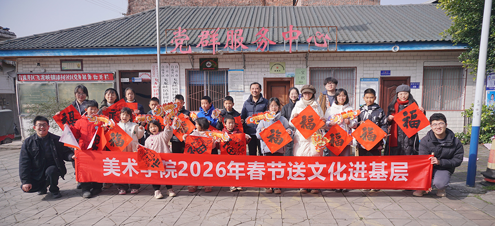 1月26日上午,美术学院师生一行8人在学院党委书记梁川教授的带领下,前往自贡市自流井区飞龙峡镇漆树社区(原漆树镇)和漆树中心小学组织开展新春送文化进基层活动。