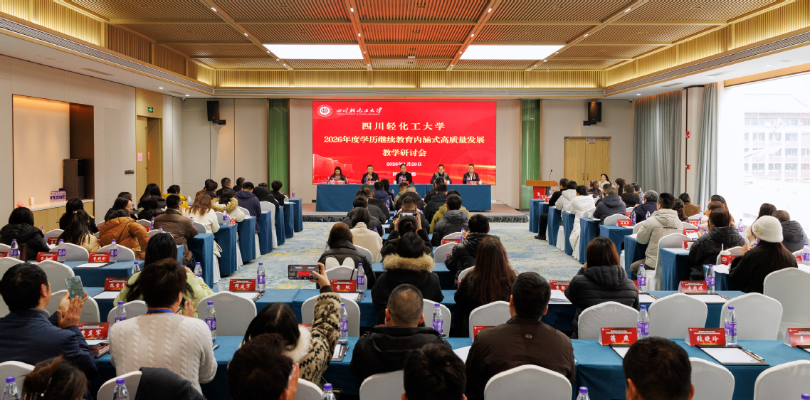 为深入贯彻党的二十大精神,推动继续教育协同创新与内涵发展,1月29日,我校在成都召开2026年度学历继续教育内涵式高质量发展教学研讨会。学校党委常委、副校长胡光忠,四川省教育评估院高等教育检测评估所副研究员阎峻,校工会、继续教育学院负责人及各教学点负责人、教师代表参会。