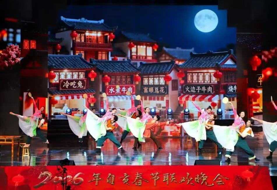 2月11日晚,2026年自贡春节联欢晚会在我校李白河校区盐都大剧院璀璨上演。本届春晚以“龙灯耀骏业,骐骥踏春生”为主题,融合歌舞、戏曲、杂技、小品、魔术等多种艺术形式,生动展现自贡城市风采与马年新春祥瑞之意,为全市人民献上一台富有地域特色与时代气息的文化盛宴。千余名观众欢聚一堂,在热烈祥和的氛围中共迎新春。