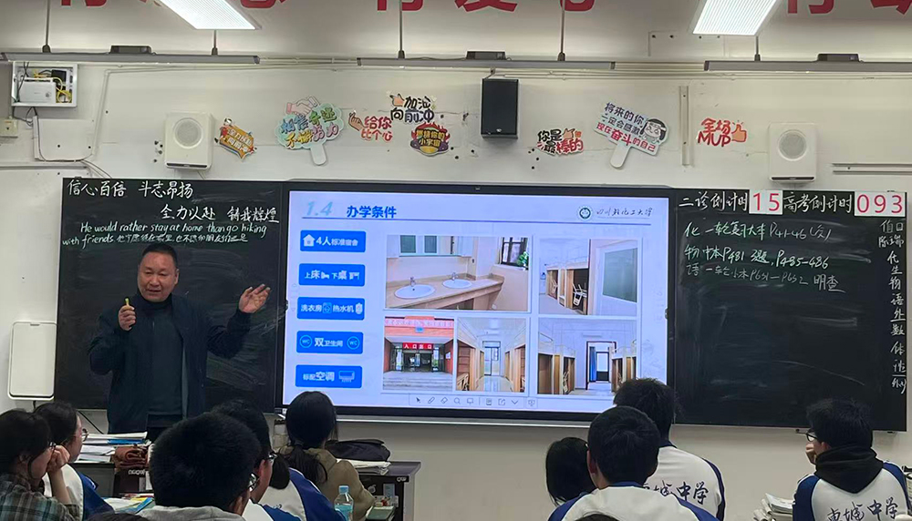 寒假期间,学生代表分别返回母校,开展“母校行”实践活动。他们结合自身备考经历,分享学习方法和心态调整技巧,并通过宣讲材料、图片视频展示我校办学特色、学科优势及校园文化,耐心解答专业选择、录取分数等疑问,鼓励学弟学妹奋力拼搏。