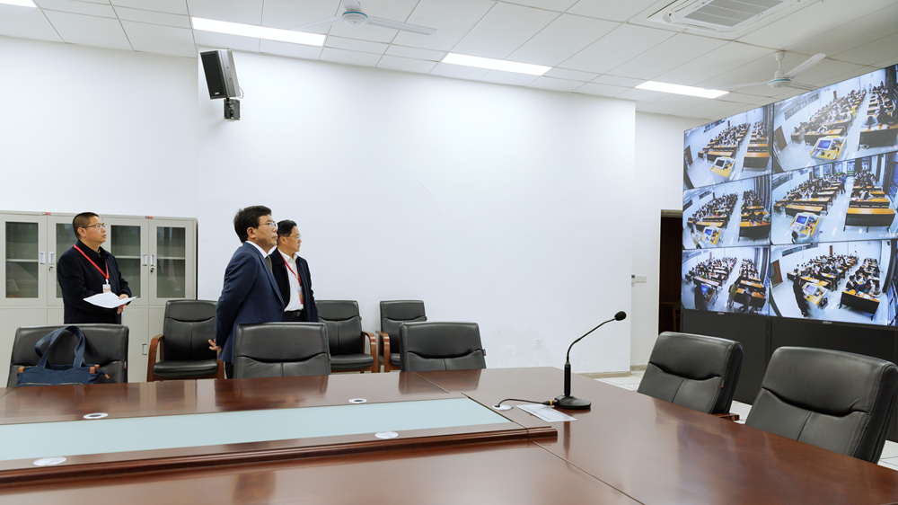 校党委书记张力带队,与副校长胡光忠、吴亚东,教务处相关负责人、各二级学院教学副院长以及校级督导专家一道,兵分三路奔赴李白河、汇东、宜宾校区教学楼。检查组的脚步穿梭于各间教室之间,从教师到岗状态到学生出勤情况,从课堂秩序到教学设备运行,对主要教学区域逐一走访、全面覆盖。