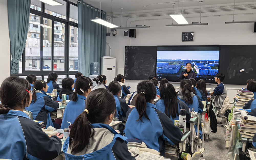 面向高三文科学生,王建琼开展“教授讲专业”专题宣讲。她通过播放宣传片、解读招生政策、发放2026年招生指南等方式,介绍了我校及马克思主义学院的发展历程、学科优势与专业设置,并结合案例阐释“学习改变命运”的深刻意义,鼓励同学们坚定信心、调整心态、奋力拼搏,以最佳状态迎接高考。