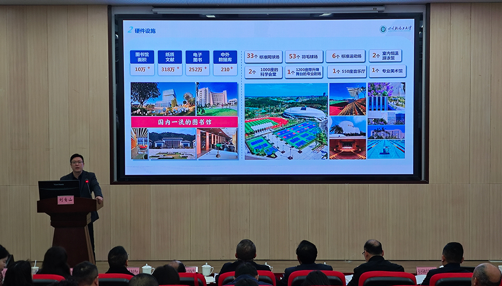招生就业处处长刘自山对宜宾市招考系统表示热烈欢迎。他指出,近五年来宜宾市累计为我校输送2600余名优秀学子,学生在校表现优异,充分展现了校地共育的丰硕成果。他表示,学校将持续优化招生策略、提升人才培养质量,紧扣宜宾产业发展需求,赋能地方高质量发展。