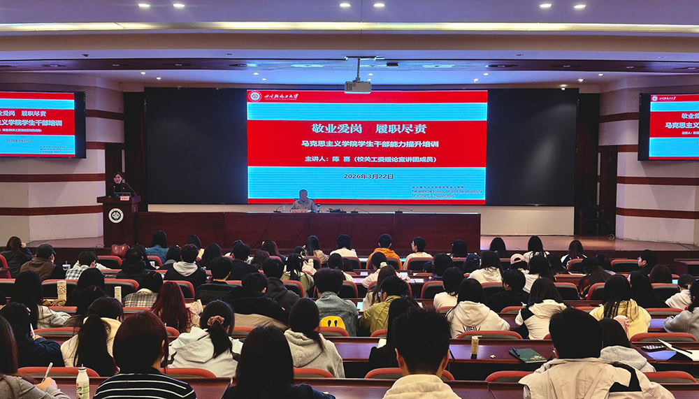 3月22日上午,马克思主义学院在汇东校区学术报告厅举办“敬业爱岗 履职尽责”学生干部能力提升培训讲座。校关工委理论宣讲团成员陈喜应邀主讲,学院200余名学生干部参加培训。