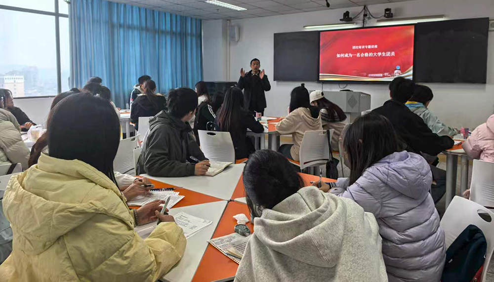 余腾平以“如何成为一名合格的大学生团员”为主题,从思想入团、专业素养、责任担当、组织入团四方面展开讲授。他强调,做一名合格共青团员要坚定理想信念,以榜样力量涵养集体主义与奉献精神,将团员标准转化为实际行动,在日常学习中提升文化素养、锤炼专业本领,自觉践行使命担当。