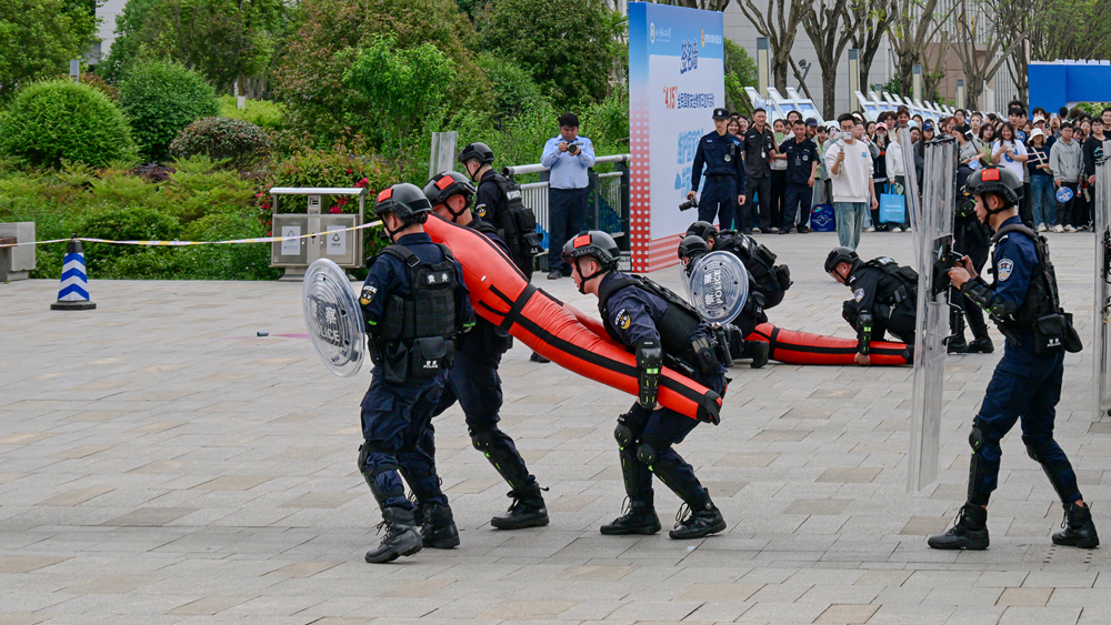 活动在庄严的升旗仪式中拉开帷幕。吴亚东宣布活动启动,魏家鲜宣布反恐防暴应急演练开始。演练环节中,自贡市公安局反恐特警支队先后展示了“五人防暴队形叠加处置战术”和“刀斧砍杀、车辆冲撞等极端暴力案事件联合处置”科目,特警队员动作迅捷、配合默契,现场师生深感震撼、深受教育。演练全面展现了公安队伍应对突发暴恐事件的高效处置能力。