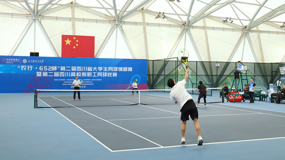 4月11日上午,“农行·652杯”第二届四川省大学生网球锦标赛暨第二届四川高校教职工网球比赛在我校李白河校区网球中心开赛。来自全省39所高校的492名师生齐聚自贡,以球会友。赛事于4月10日至12日举行,由四川省大学生网球协会主办,我校承办。四川省政协原副主席罗布江村、省网球协会副主席刘欣欣、我校校长曾英等出席开幕式。开幕式由我校党委常委、副校长罗惠波主持。