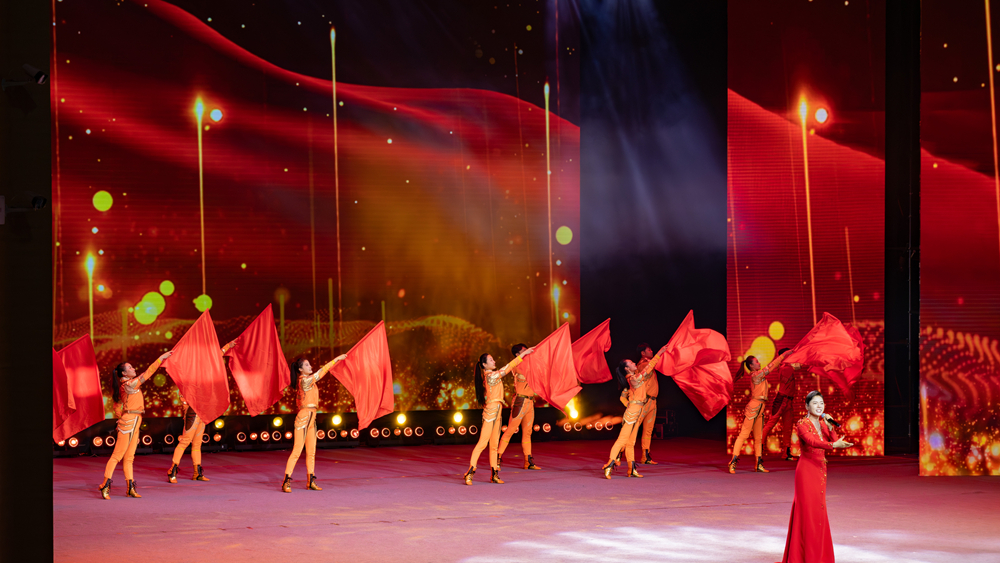 演出在情景舞蹈《劳动畅想曲》中拉开帷幕。欢快灵动的舞姿生动展现了劳动者昂扬向上的精神风貌,瞬间点燃现场气氛。《火红年代》《咱们工人有力量》《我为祖国献石油》系列经典歌曲铿锵激昂,唱出了工人阶级的豪迈与担当;《不忘初心》《领航》《天耀中华》深情讴歌了新时代的使命担当;配乐朗诵《劳动者最美》质朴真挚,深情礼赞一线奋斗者;相声《大美四川》妙趣横生,尽显巴蜀地域特色与人文底蕴;魔术《放飞梦想》奇幻惊艳,赢得阵阵喝彩;舞蹈《跑向美好生活》活力满满,彰显奋进向上的时代气息。太阳部落组合带来的《带我到山顶》以及著名女高音歌唱家陈思思演唱的《珊瑚颂》《奋斗进行曲》将现场气氛推向高潮。整场演出歌曲、舞蹈、相声、魔术、配乐诗朗诵、音舞诗画等节目轮番登场,精彩纷呈,现场掌声不断、气氛热烈。